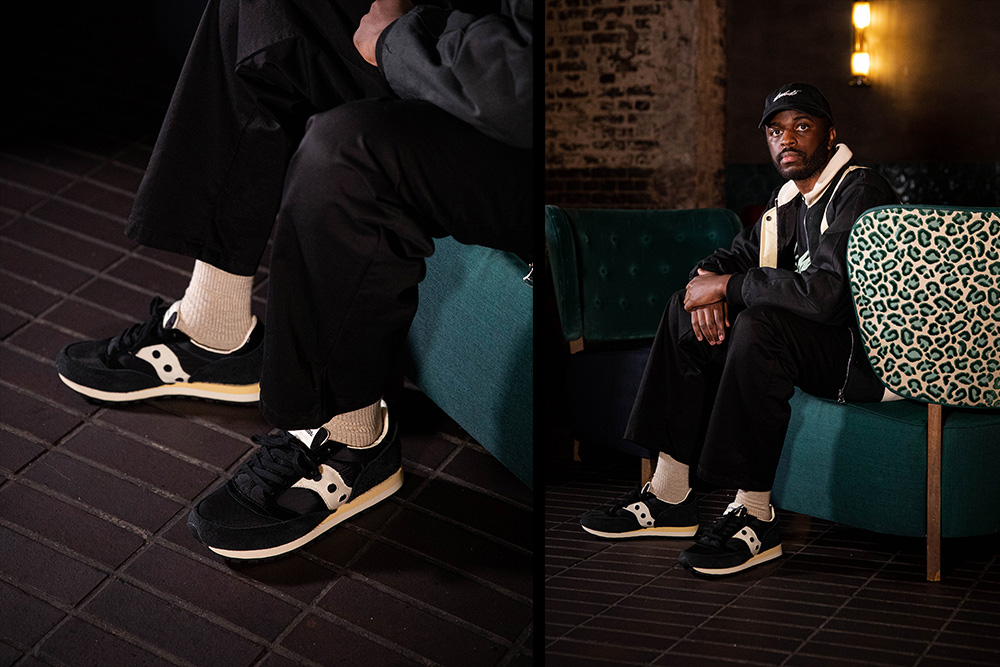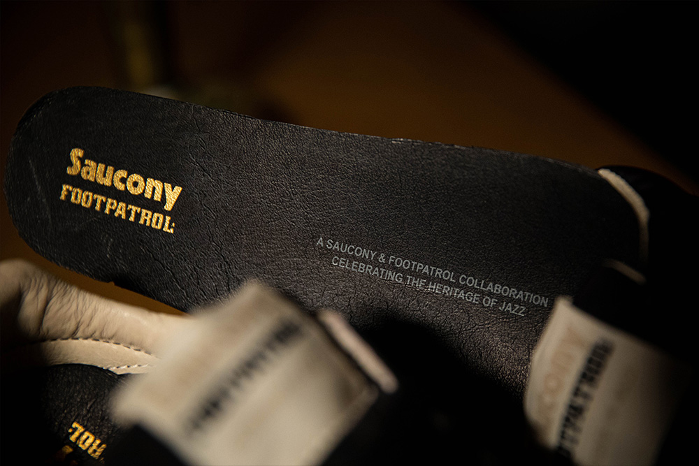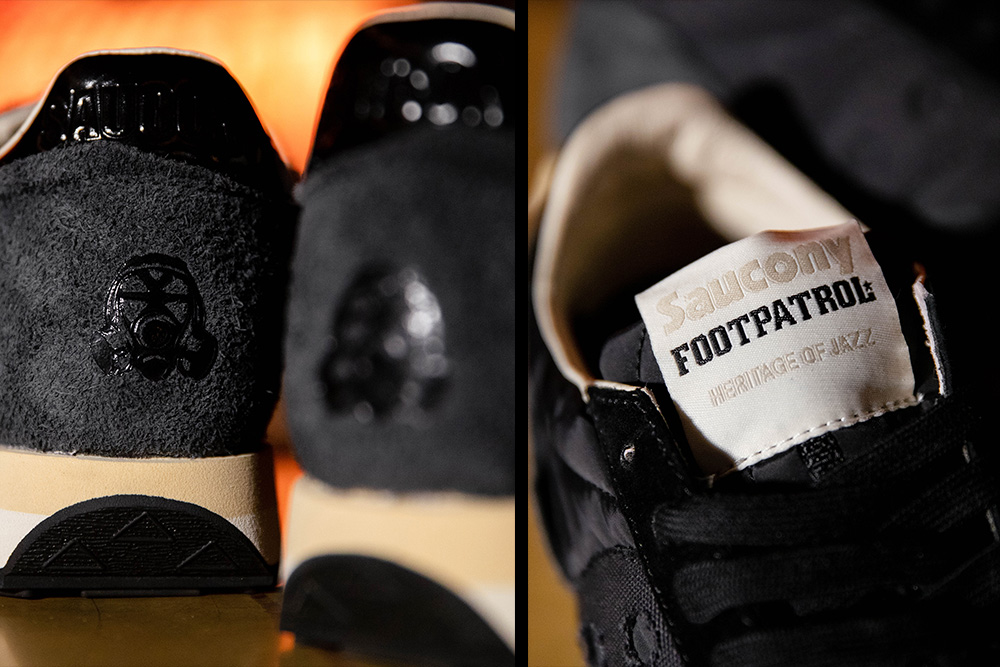 Notre version de la Saucony Jazz haut de gamme est fabriquée à partir d’un nylon souple recouvert d’un revêtement extérieur noir, tandis que le poil à longue fourrure et le daim Wolverine embellissent l’embout, le talon et le lacet, ajoutant une touche luxueuse à cette esthétique discrète. La Footpatrol Jazz ’81 présente divers détails de conception, comme la languette en nylon cousue en oignon, qui s’inspire des vestes matelassées indémodables, ainsi que le détail du talon en cuir verni avec le marquage en relief du logo Footpatrol.