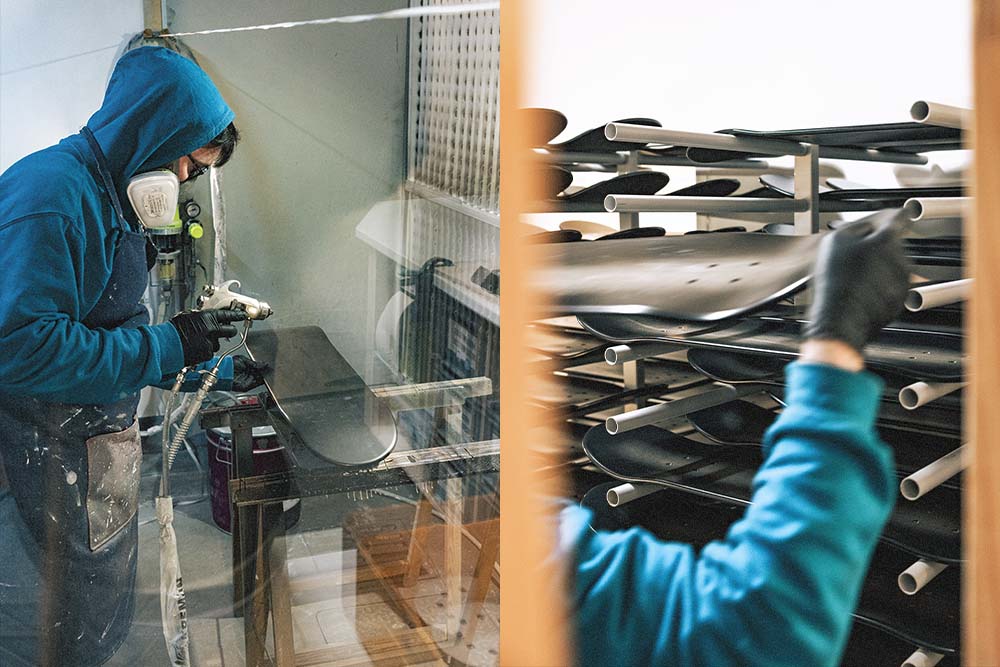 Cette réalisation en interne est permise par le lien qui unit le studio graphique à l’atelier de production. Allant de la menuiserie à l’imprimerie, ce dernier leur permet d’aisément lier les aspects artistiques et créatifs à la production.