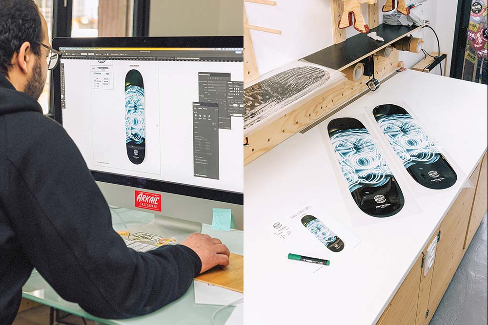 L’atelier accompagne ses collaborateurs de la conception au produit fini afin d’apporter ses solutions à tous les stades. Depuis ses débuts en 2012, Arkaic a produit environ 20 000 planches de skate pour ses différents collaborateurs.