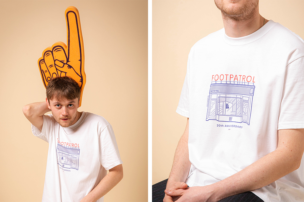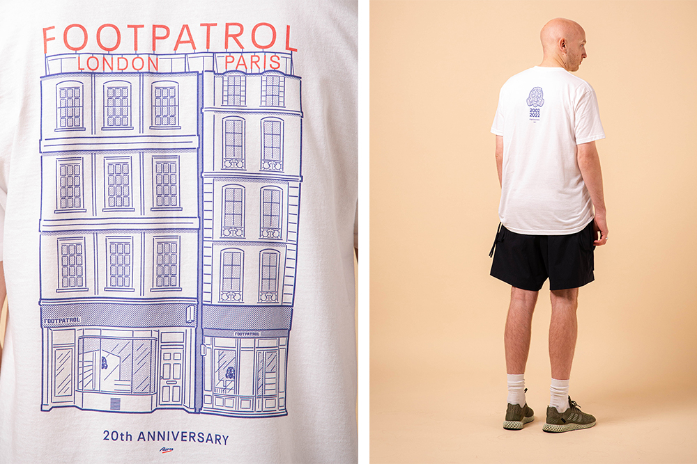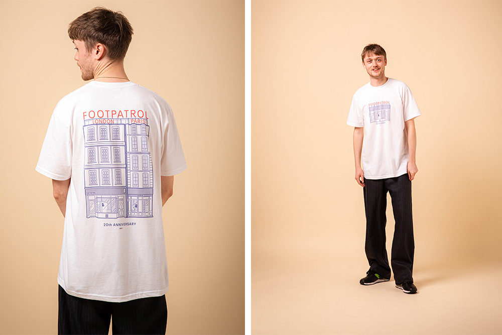 Rimo : Pour le 20e anniversaire de Footpatrol, je voulais faire le mieux possible. Avec comme source de d’inspiration, le numéro 20, les boutiques de Londres et de Paris, la famille et la communauté de Footpatrol. Personnellement, je pense que pour ce 20e anniversaire, en créant des produits comme celui-ci, cela nous permet de se rapprocher de notre communauté et de rendre ce lien plus fort qu’auparavant.