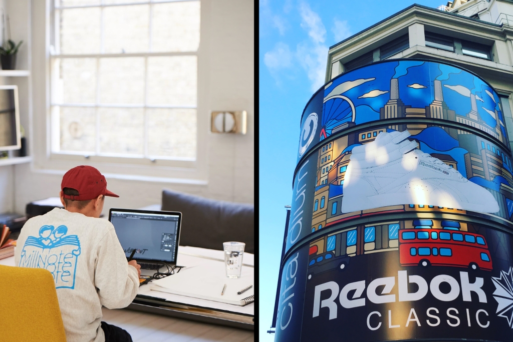 Rimo : Bonjour, je m’appelle Rimo. Je suis un graphiste et un illustrateur basé à Tokyo. J’organise également des expositions de mon propre travail dans des galeries de manière occasionnelle. J’ai travaillé dans plusieurs projets autour des sneakers depuis quelques années. Je suis à l’origine des principaux visuels pour de nombreuses publicités de sneakers qui ont été diffusées dans le monde entier, et je travaille régulièrement à la réalisation d’illustrations et de dessins ainsi que sur la direction artistique d’animations vidéos. Occasionnellement, j’axe mon travail sur ce qu’il se passe au sein des coulisses des collaborations entre les entreprises et les magasins de sneakers du monde entier, en utilisant l’animation.